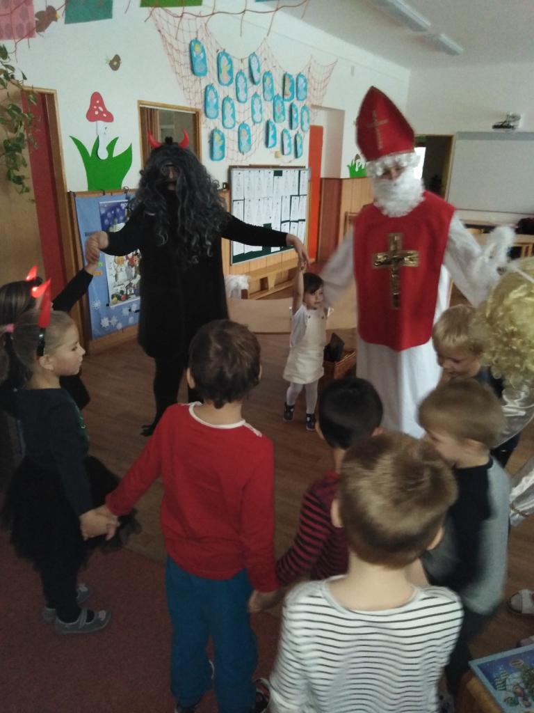 V pondělí 6. prosince 2021 nás potěšil svojí návštěvou Mikuláš s andělem a čertem.