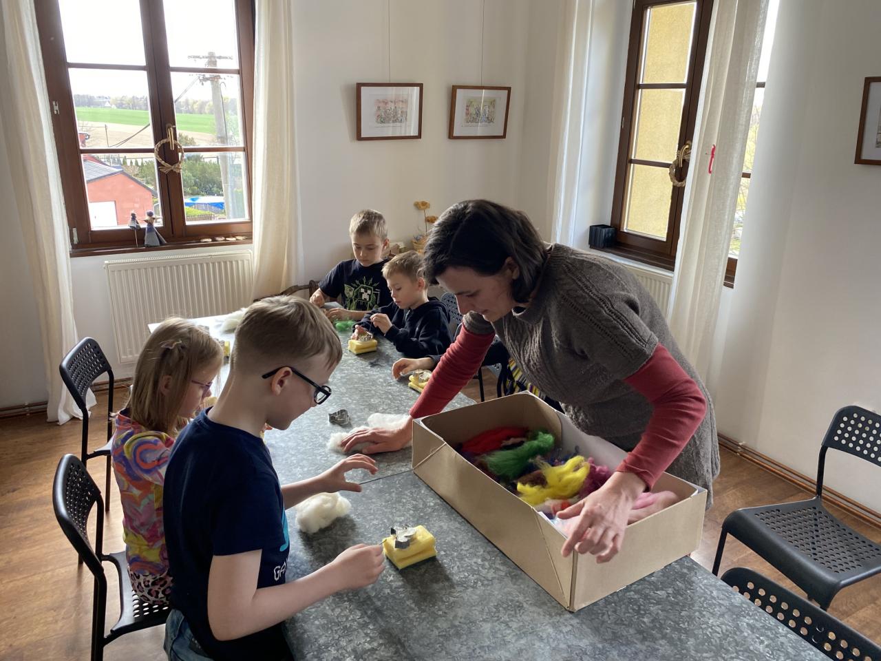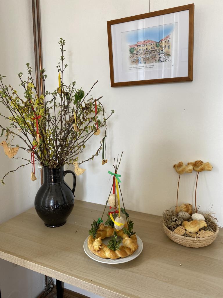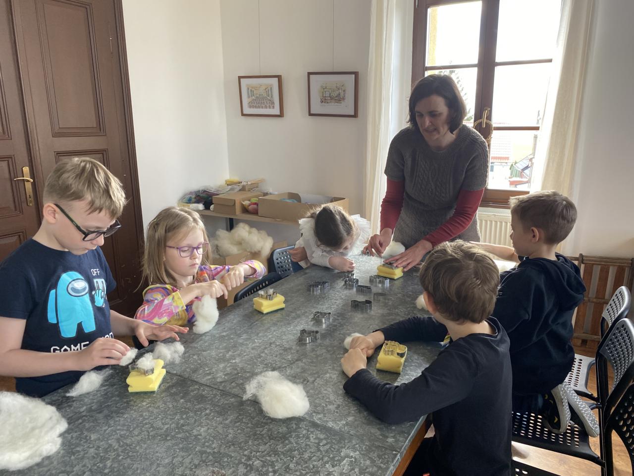 Pro děti byl připraven jako vždy pestrý program. Začali jsme povídáním o původu Velikonoc. Děti se rozdělily na dvě skupiny - jedna pekla jidáše a druhá skupina vytvářela plstěné ozdoby