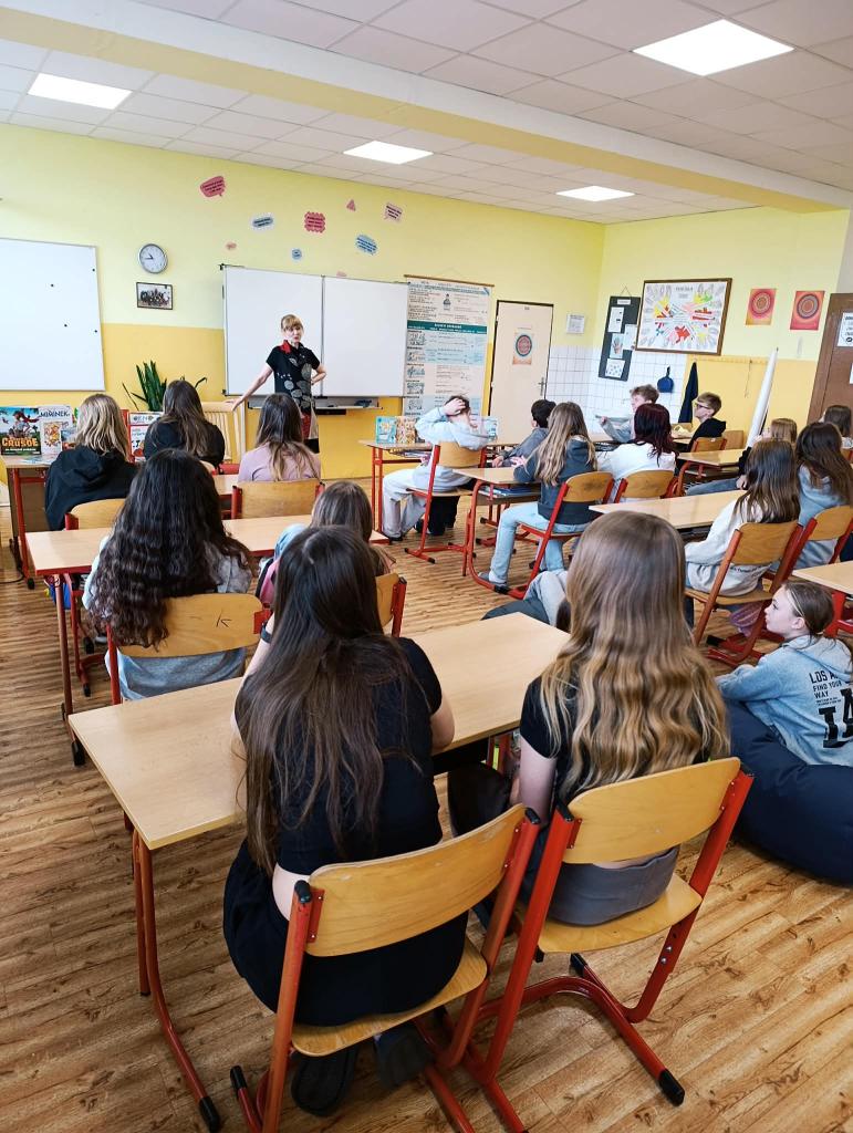 Ve čtvrtek 16. 4. 2026 jsme na naší škole přivítali spisovatelku Ivonu Březinovou, která připravila poutavou besedu pro žáky 3. a 4. třídy a také pro žáky 6. a 7. ročníku. Děti měly možnost nahlédnout do světa knih a dozvědět se více o práci spisovatele. Beseda byla velmi inspirativní a přinesla spoustu nových podnětů ke čtení. Po skončení besedy proběhla autogramiáda, při které si žáci nechali podepsat knihy, které si zakoupili nebo přinesli z domova. Děkujeme paní spisovatelce za milé setkání.