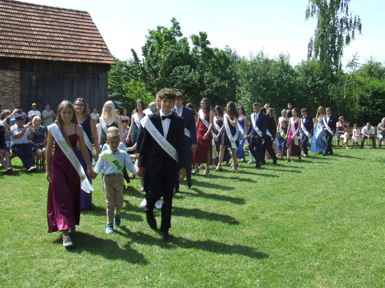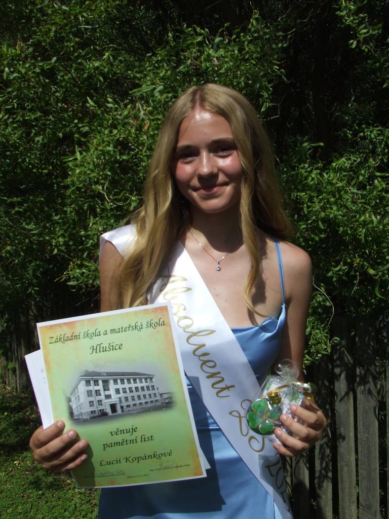 Po projevu starosty obce, pana Jaroslava Trejbala, paní ředitelky Jany Syřišťové a třídní učitelky Lenky Mojžíšové proběhlo ošerpování našich deváťáků, kteří obdrželi vysvědčení. Následovalo ocenění vybraných žáků z jednotlivých tříd, oceněni byli: Terezka Krejbichová (1.tř.), Karolína Čerychová (2.tř.), Amálka Kazdová (3.tř.), Eliška Jirásková (4.tř.), Daniel Bílek (5.tř.), Kristýna Diblíčková (6.tř.), Zuzana Kánská (7.tř.), Adéla Nováčková (8.tř.), Adéla Novotná (9.tř.). Poté byli vyhodnoceni žáci, kteří úspěšně reprezentovali naši školu v nejrůznějších soutěžích: Adam Schovánek (1.tř.), Laura Jančáková, Edvard Filipi (3.tř.), Zora Faustusová, Eliška Jirásková, Nicol Grunfeldová (4.tř.), Vojta Kánský (7.tř.), Nela Hermanová, Tomáš Janouch a Štěpán Drobný (8.tř.), Anna Filounková, Adéla Klimešová, Adéla Churáčková, Leontýna Linková, Adam Novák, Vanesa Soumarová, Eliška Churáčková, Lucie Kopánková, Vanesa Pohořalová a Daniel Řeháček (9.tř.).